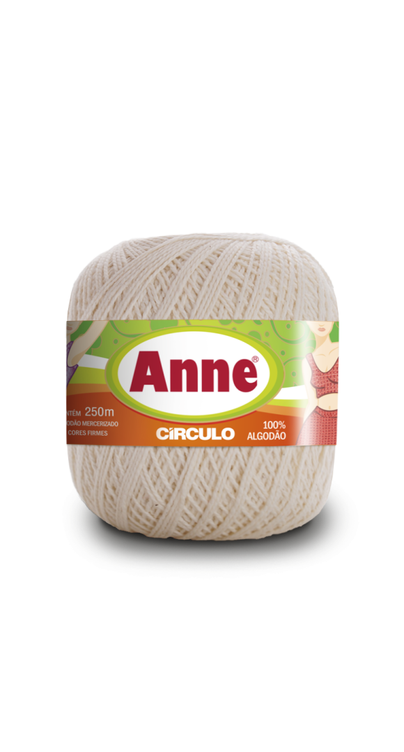 O fio Anne é um produto 100% algodão mercerizado, que proporciona acabamento cintilante e toque macio a sua confecção. Quando trabalhado com pontos mais fechados para meia estação e inverno, mantém a sua peça leve e suave. Na decoração é indicado principalmente para confecção de trilhos de mesa, toalhinhas decorativas, barrados em toalhas e panos de copa, pois possui um excelente rendimento.